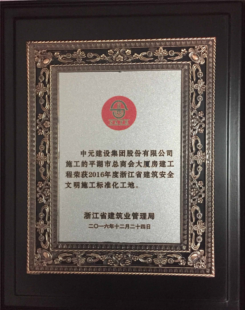 2016年度浙江省建筑安全文明施工标准化工地平湖市总商会大厦房建工程