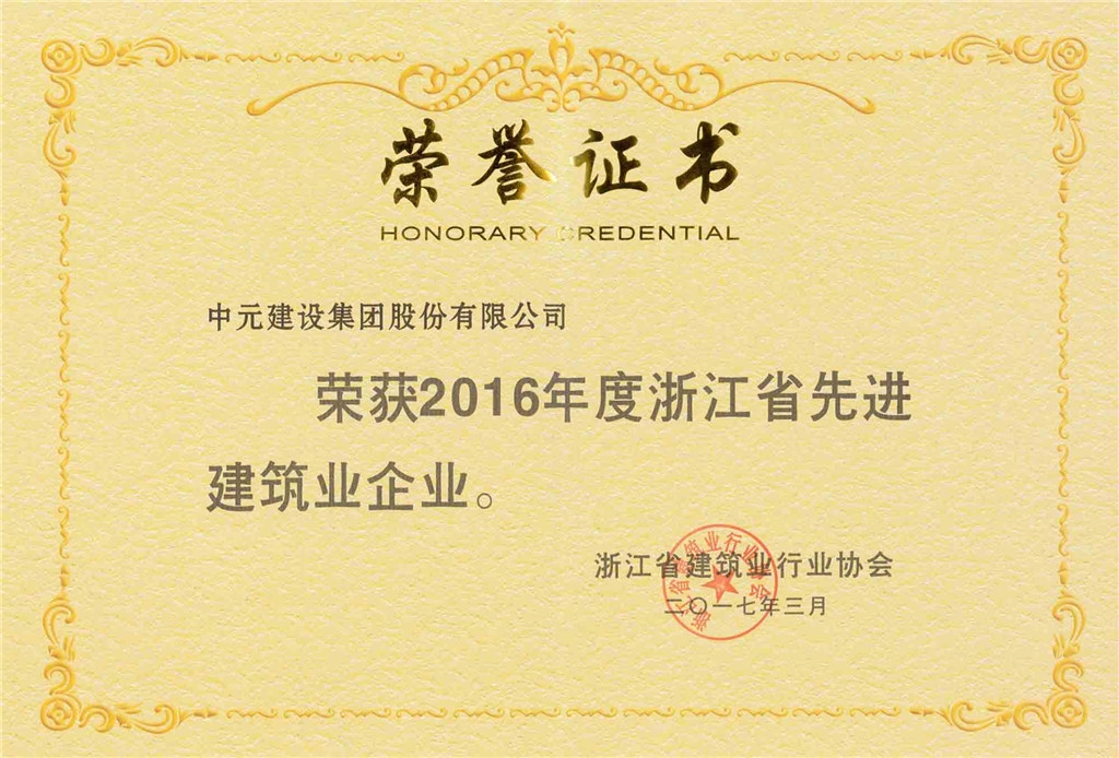2016年度浙江省先进建筑业企业(证书)