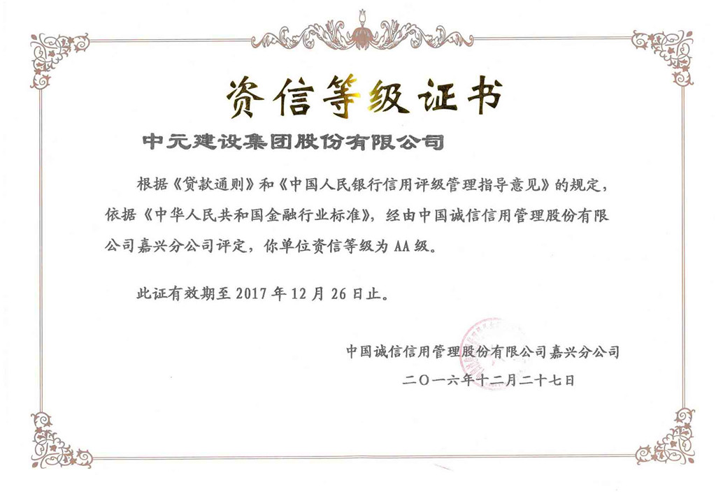 资信登记证书2016.12.27-2017.12.26