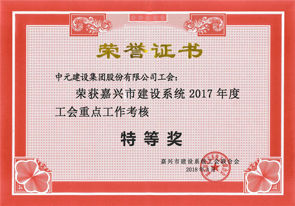 2017年度工会重点工作考核特等奖