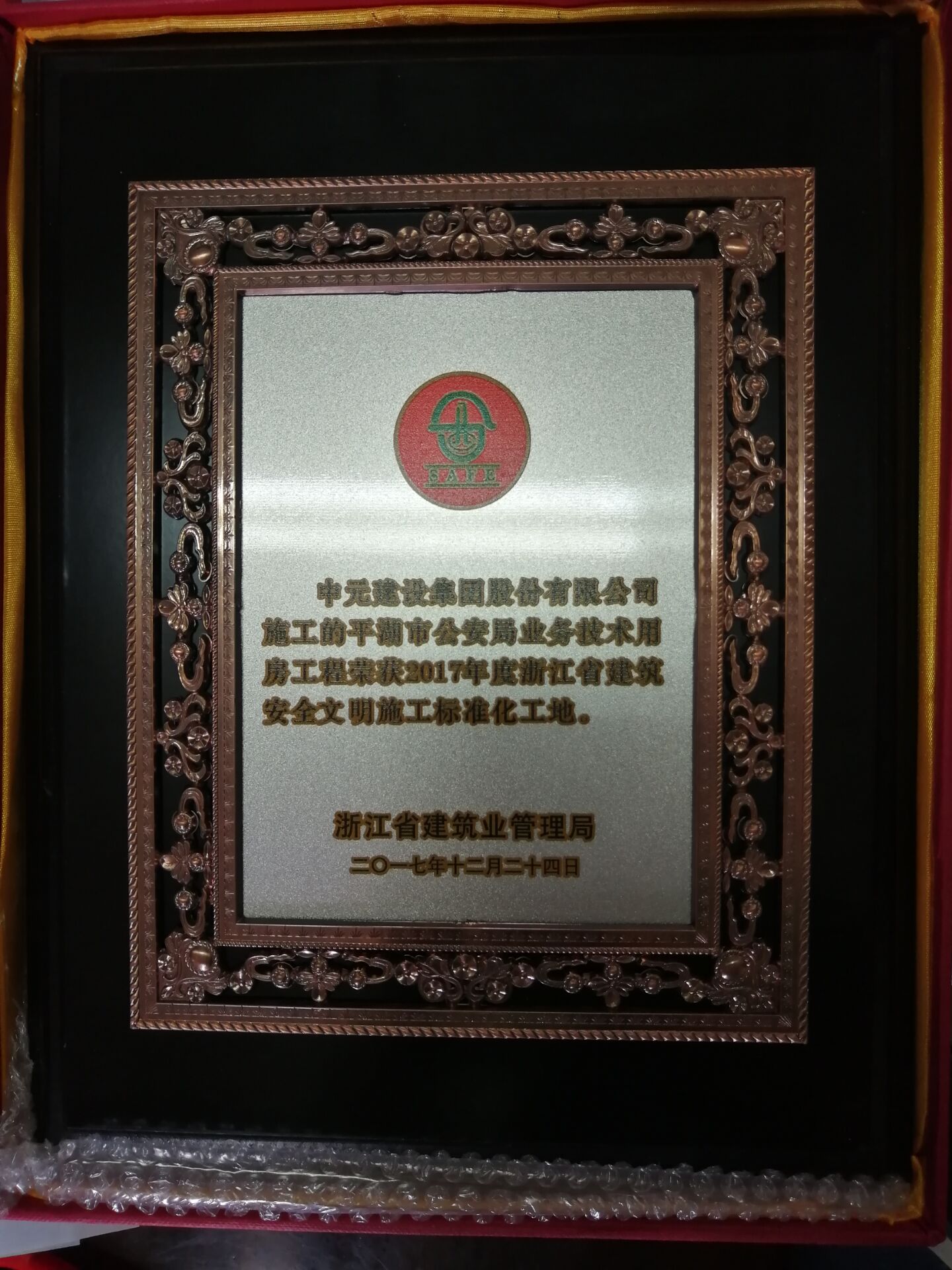 2017年度浙江省建筑安全文明施工标准化工地(平湖市安工局技术用房工程)