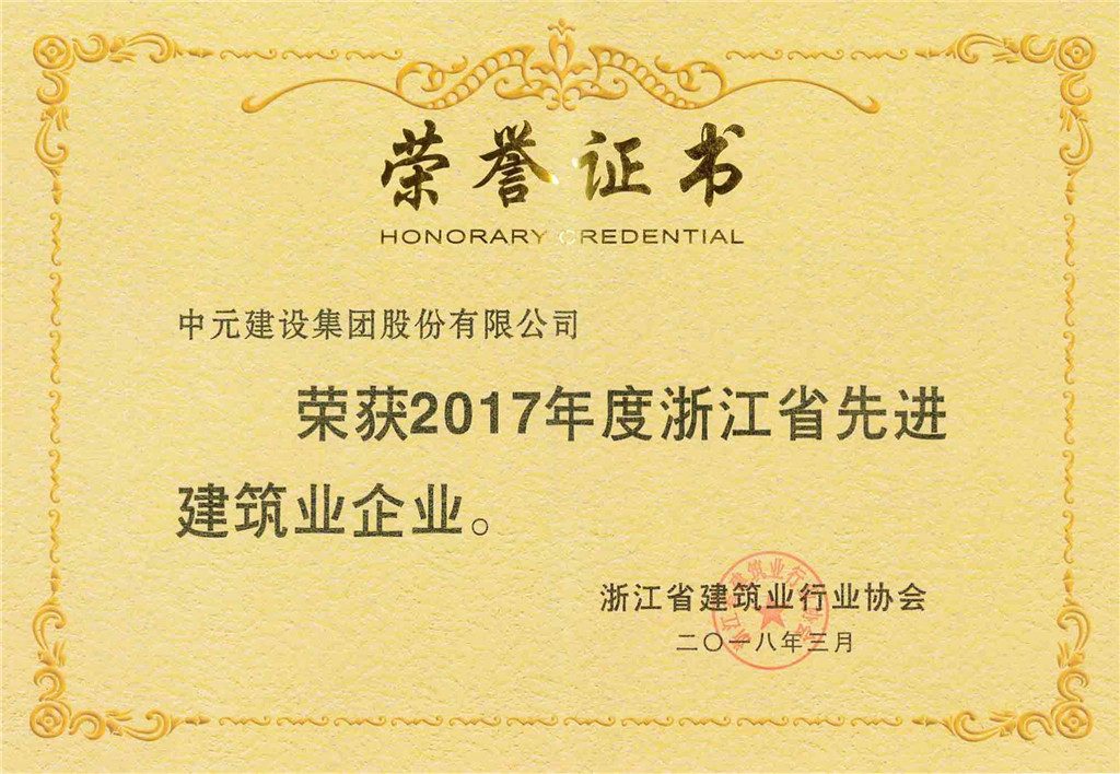 2017年度浙江省先进建筑业企业证书