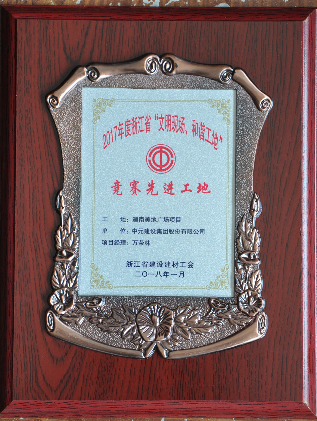 2017年竞赛先进工地(工地:迦南美地广场项目 项目经理:万荣林)