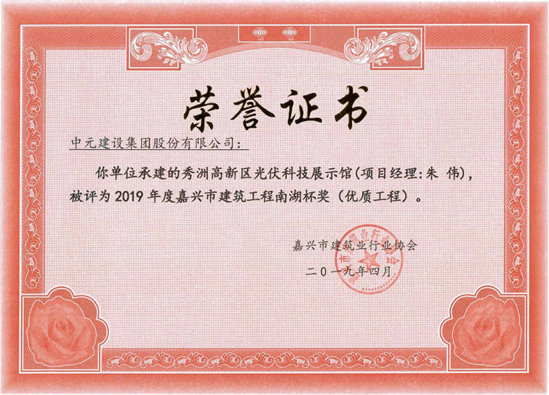 2019年度嘉兴市建筑工程南湖杯奖(优质工程)秀洲高新区光伏科技展示馆