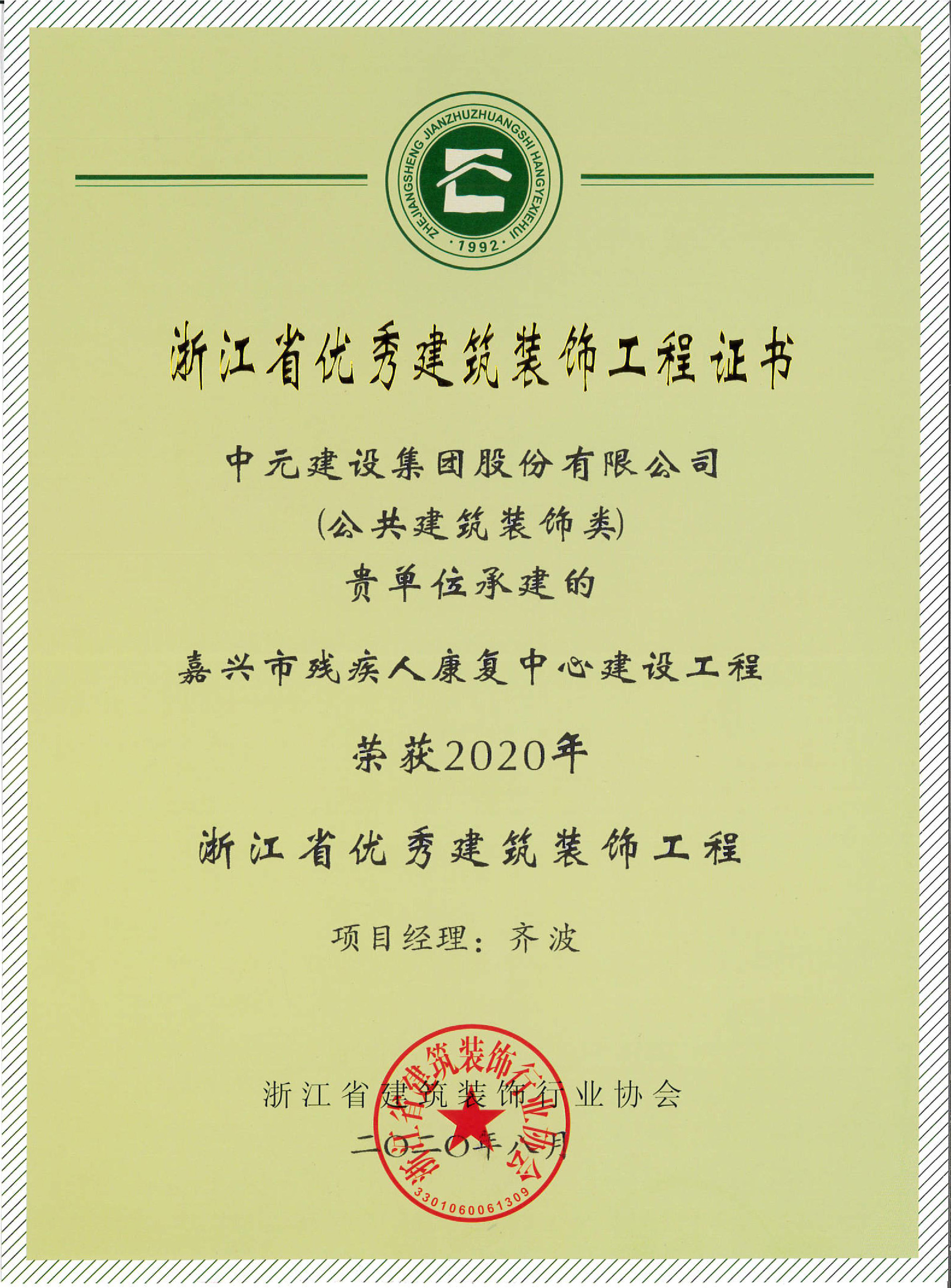 2020年浙江省优秀建筑装饰工程(嘉兴市残疾人康复中心建设工程)