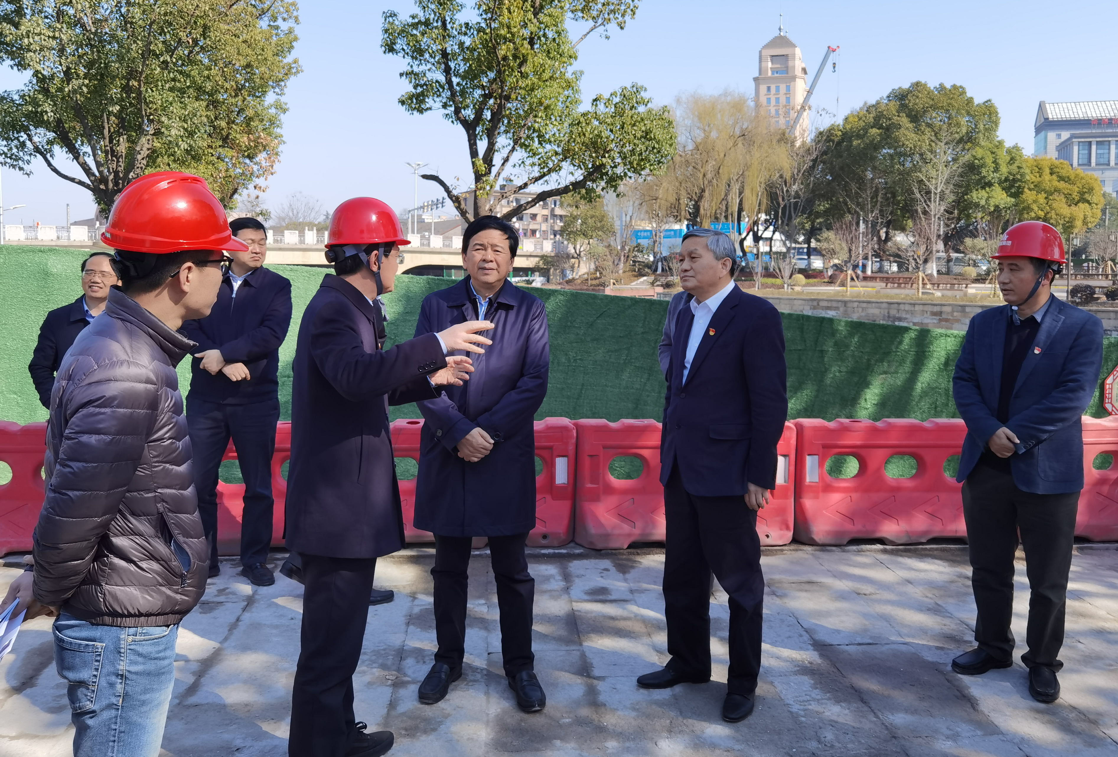2月19日正月初八,浙江省委常委、组织部黄建发部长带队来嘉兴调研新时代“重走一大路”工程建设情况。在我公司承建的环城路(河)环境整治提升项目市政景观一标段春波门施工现场,对项目建设情况进行视察。