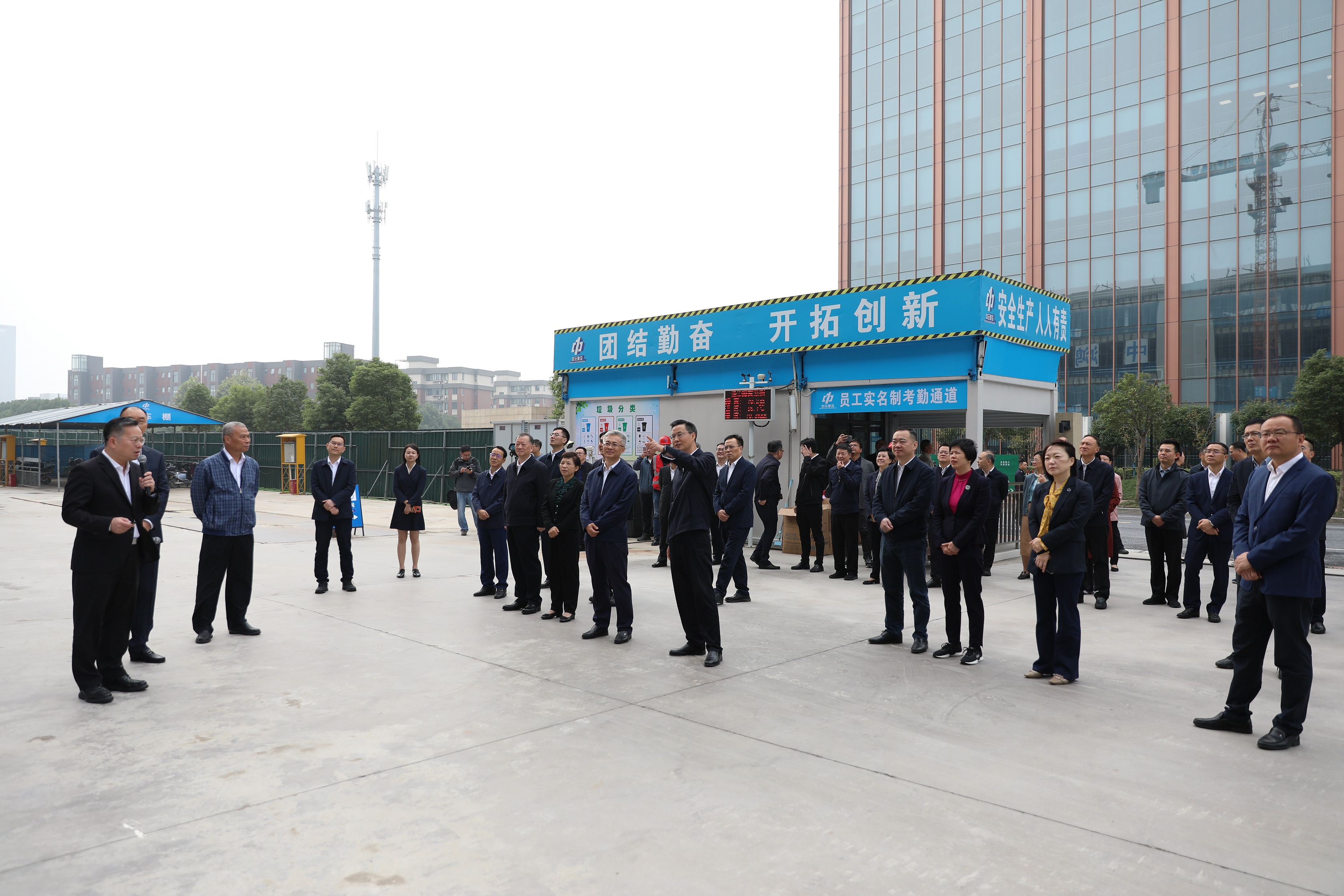 2024年10月28日上午,嘉兴市2024年第三次“互学互比互赛”活动来到南湖区,现场观摩位于由集团公司承建的正泰智慧能源华东科创产业园二期建设项目。嘉兴市委书记陈伟,市委副书记、市长李军,南湖区委书记邵潘锋,南湖区委副书记、区长陈群伟等领导参加此次活动。集团公司总裁邹俊、建筑分公司总经理沈飞等领导做好服务接待工作。