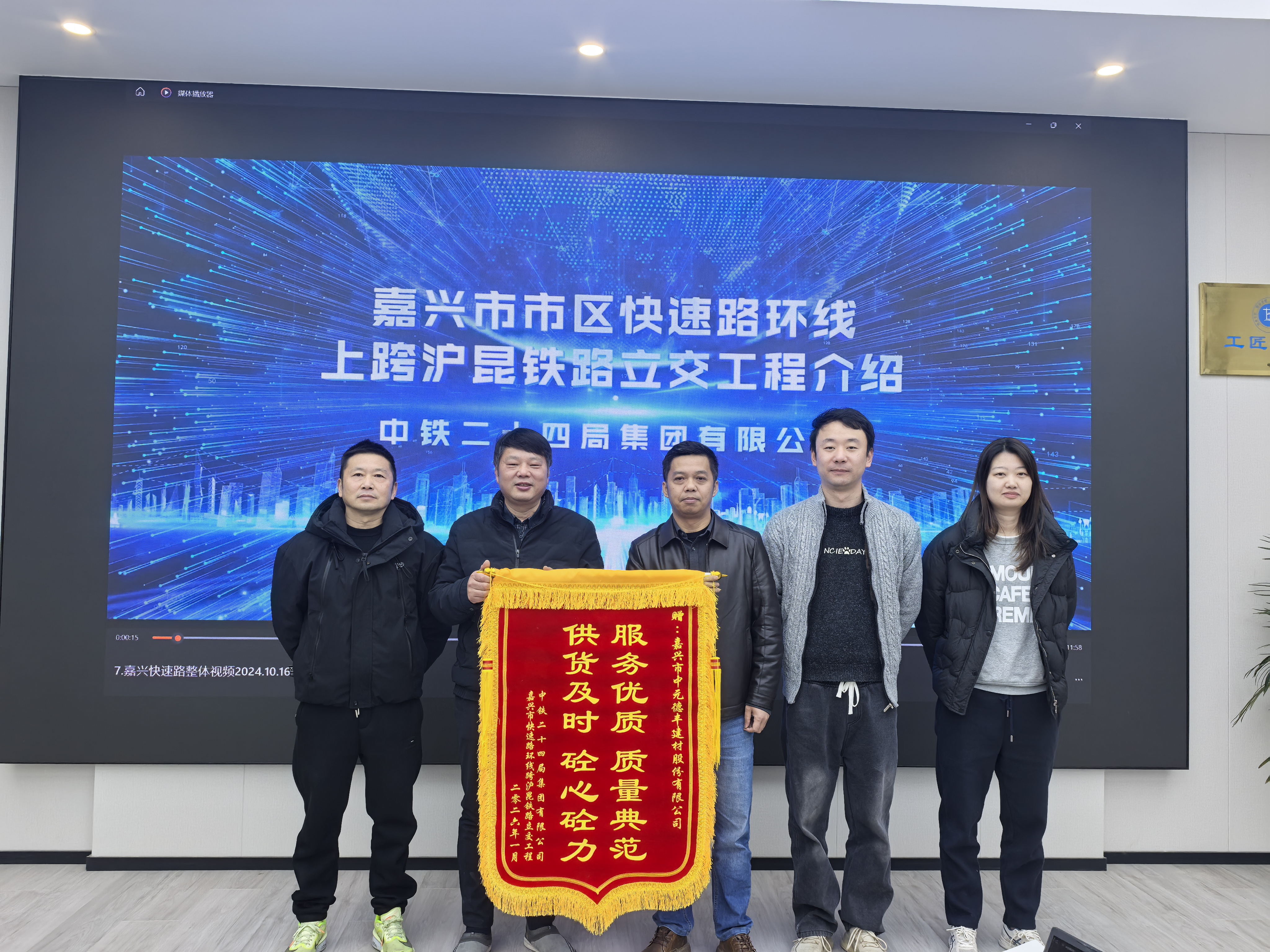 同心筑品质,精诚筑精品 ——中铁二十四局嘉兴快速路项目部向德丰建材赠旗致谢