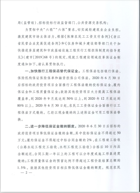 关于在全省工程建设领域改革保证金制度的通知
